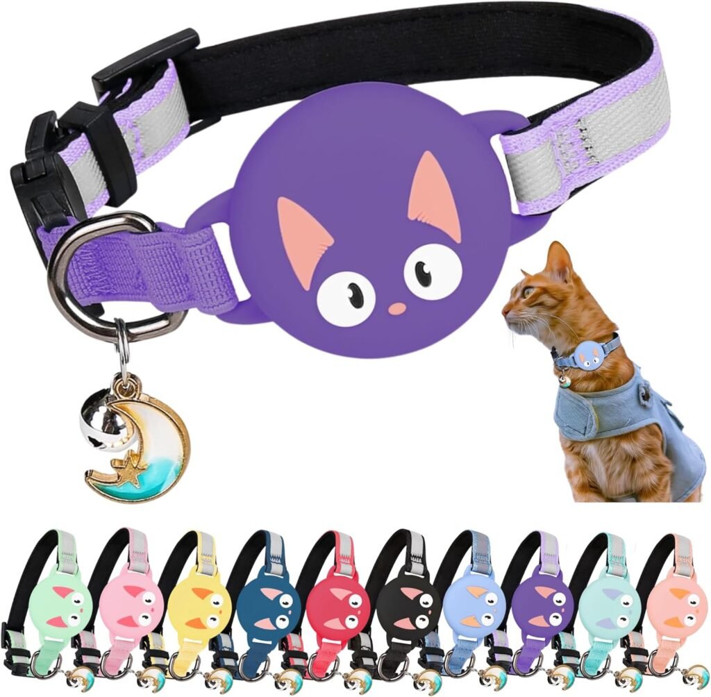 Collar de gato con accesorio compatible con Airtag Apple,reflectante y luminoso GPS con anti estrangulamiento, ajustable, GPS Airtag no incluido