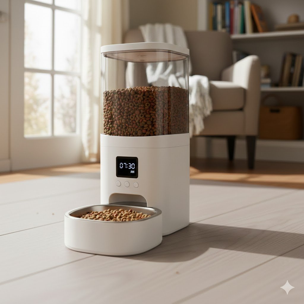 4L Comedero Gato Automático Dispensador 1-6 Comidas al Día. Comida Gatos y Perros con función de grabación de 10s, USB, Blanco para Pequeño/Mediano Mascota