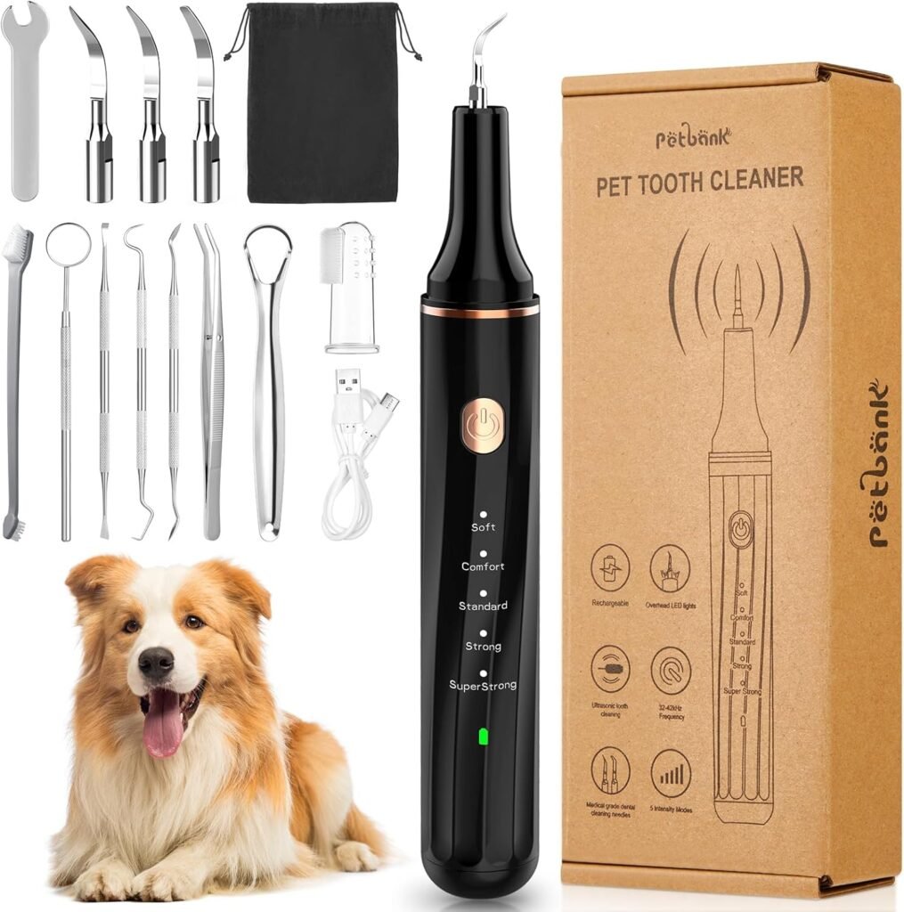 Kit de limpieza dental ultrasónico Petbank para perros y gatos, eliminador de sarro dental ultrasónico para perros y gatos, 5 modos de limpieza y 4 cabezales de limpieza para mascotas