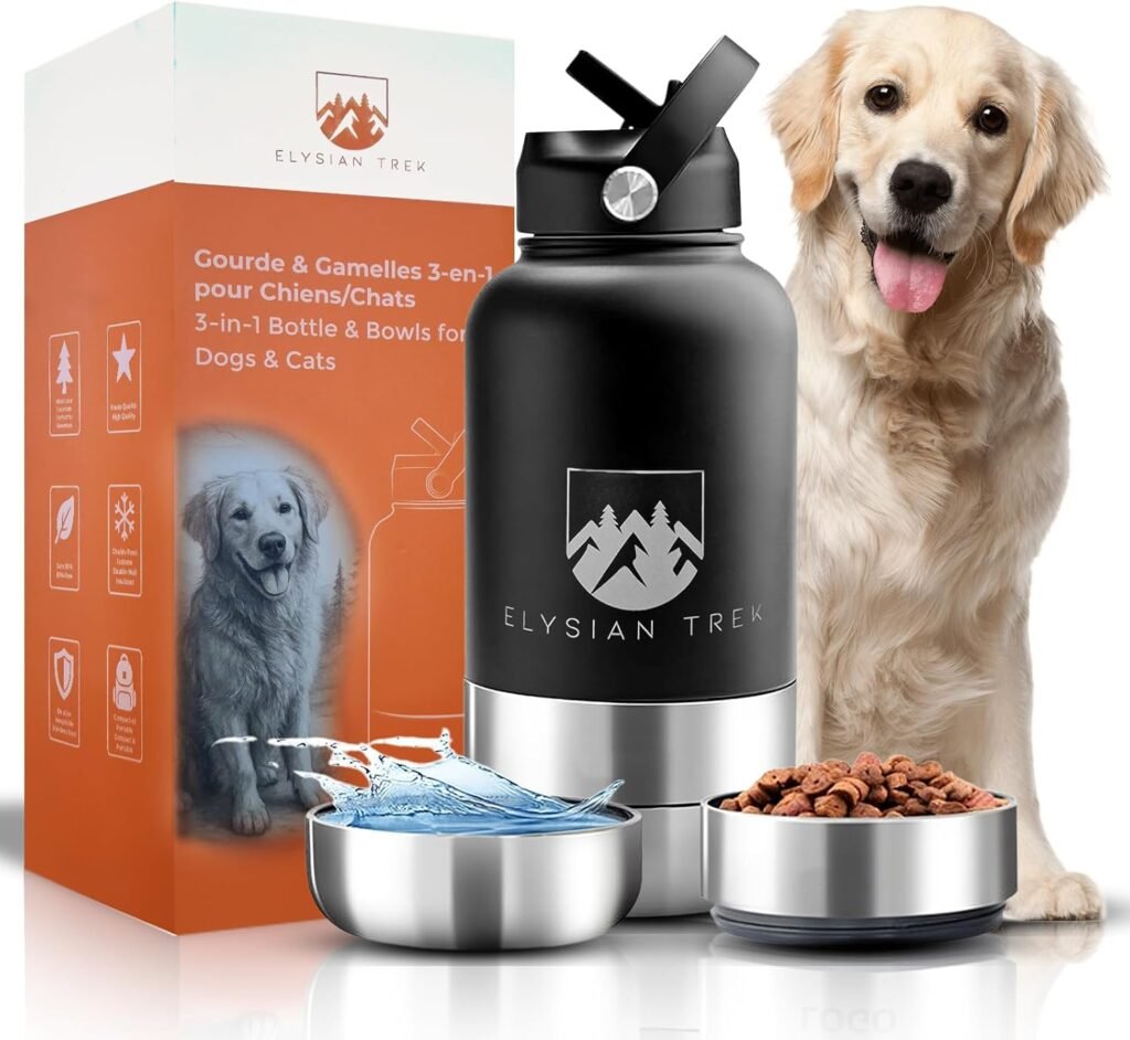 Botella para Perros 3 en 1 Botella Térmica de Acero Inoxidable 1 L con Cuencos Integrados – Ideal para Senderismo, Camping y Viaje – Sin BPA