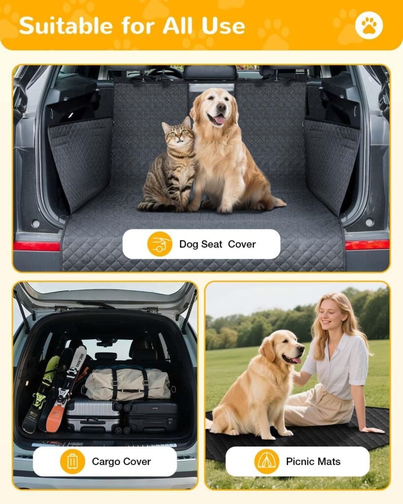 Protector de Maletero para Perros, Manta Impermeable y Antideslizante con Protección Lateral y de Parachoques, Funda Resistente y Fácil de Limpiar para Maletero de Coche – Negro