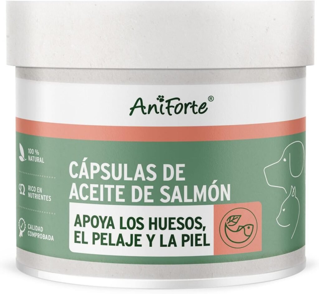 AniForte cápsulas de Aceite de salmón para Perros y Gatos 500 Unidades – valioso Aceite de Pescado Omega 3 y 6 y vitaminas para el metabolismo, la formación ósea y un Pelo Brillante.