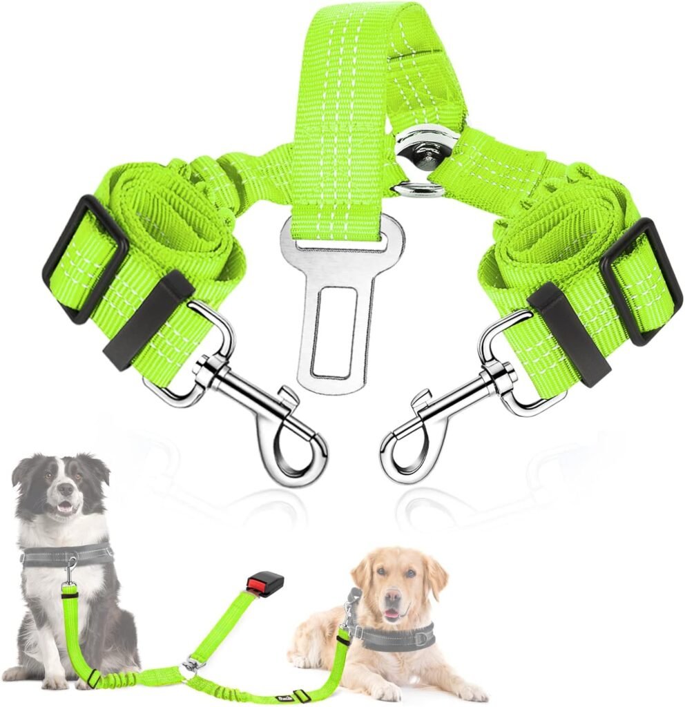 SlowTon Cinturón de Seguridad Coche Perro, 2 Perros sin enredo Cinturón de Seguridad elástico Duradero para el Coche, Ajustable Reflectante Seguro Doble Perro Coche arnés Divisor para Viajar